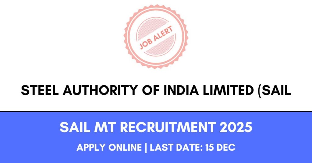 Attention, Engineering Graduates! The SAIL MT Recruitment 2025 notification is officially out. Steel Authority of India Limited (SAIL), a Maharatna PSU, has announced 124 vacancies for Management Trainee (Technical) positions. This is a premier opportunity to launch a rewarding career in India’s leading steel-making company. Eligible candidates with a B.E./B.Tech degree can apply online through the official portal. Don’t miss your chance to join this prestigious organization. Hurry, as the application window is open for a limited time!